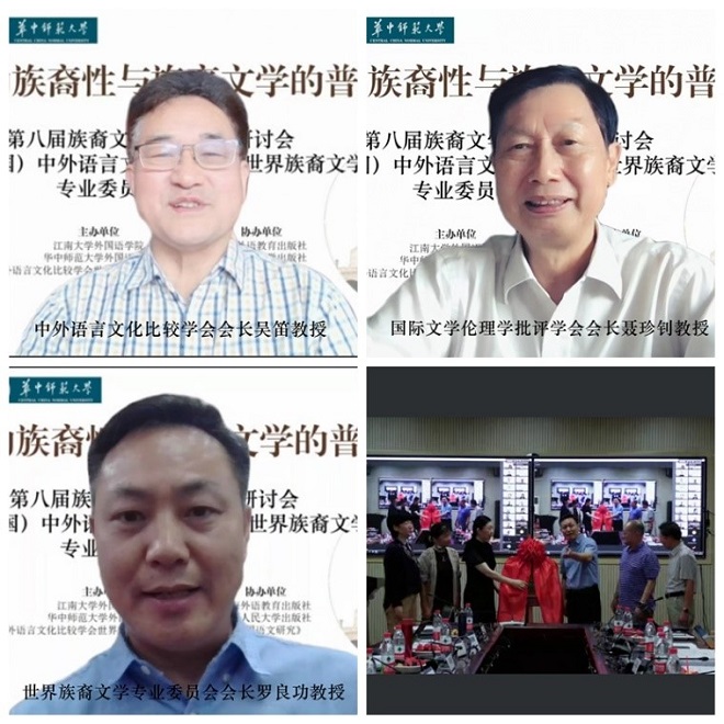 和中外语言文化比较学会世界族裔文学专业委员会联合主办的“文学的族裔性与族裔文学的普遍性:第八届族裔文学国际学术研讨会暨(中国)中外语言文化比较学会世界族裔文学专业委员会成立大会”成功召开。会议由上海外语教育出版社、中国人民大学出版社、《外国语文研究》编辑部协办。来自美国加州大学洛杉矶分校、美国马萨诸塞大学、美国宾州州立大学、美国加州州立大学洛杉矶分校、日本大学、马来亚大学、韩国东国大学、北京大学、浙江大学、复旦大学、南京大学、中国人民大学、四川大学、北京师范大学、广东外语外贸大学、东北师范大学、华中师范大学、暨南大学、杭州师范大学、上海师范大学、南京师范大学、湖南师范大学、山东师范大学、杭州电子科技大学、江南大学等国内外百余所高校的300多名专家学者参与会议。由于疫情的持续影响,本次会议采用线上线下相结合的方式。