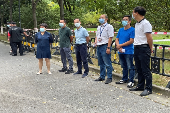 整场考试严格按照防疫预案,考生佩戴口罩进入教学楼前均进行体温测量,考场内放置了免洗消毒液。为了保障本次竞赛顺利开展,学院也多次召开竞赛筹备工作会议。竞赛当天,教务处、学工处、后勤管理处等领导在学院党委书记史志洪、党委副书记刘伯贤的陪同下巡视了各考场情况。考务与监考老师分工明确、各司其职。由于提前做好了整个竞赛考试的准备工作,从而使疫情防控、考场安排、监考培训、试卷安保及运输、听力播放、考场监考、答卷回收、批改阅卷等各个环节得以规范有序进行。