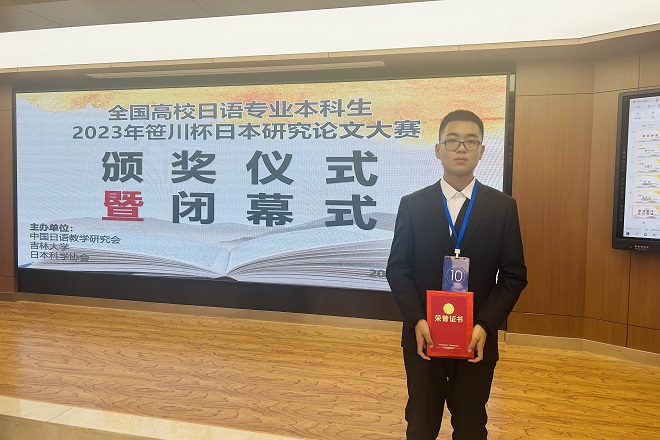 2023年11月18日,“2023年笹川杯日本研究论文大赛”在吉林大学圆满落幕。我校20级日语专业学生傅泽宇冲进决赛,最终荣获文化