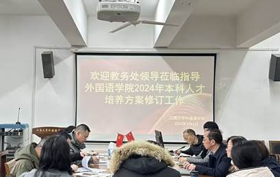 会上,方文开院长基于前期广泛调研的成果,围绕修订工作的核心内容进行报告,强调了利用长三角经济发达地区资源优势,突出学校人才培养特色,积极应对科技挑战,着力英语专业、日语专业和大学英语公共基础课的特色发展。顾琦一副院长针对学科布局和专业发展汇报了具体设想,介绍了基于国家政策、学校特色和学生需求的专业方案和大学英语课程体系与修读模式方案。参会人员针对修订工作中遇到的疑惑和困难进行了深入交流和研讨。教务处李兆丰处长强调了本科人才培养方案修订工作的重要性,提出跨学科和跨学院课程设置的规划和选课方案,鼓励教学改革与教学创新,强调课程质量的“两性一度”要求,同时充分肯定了天美娱乐官网