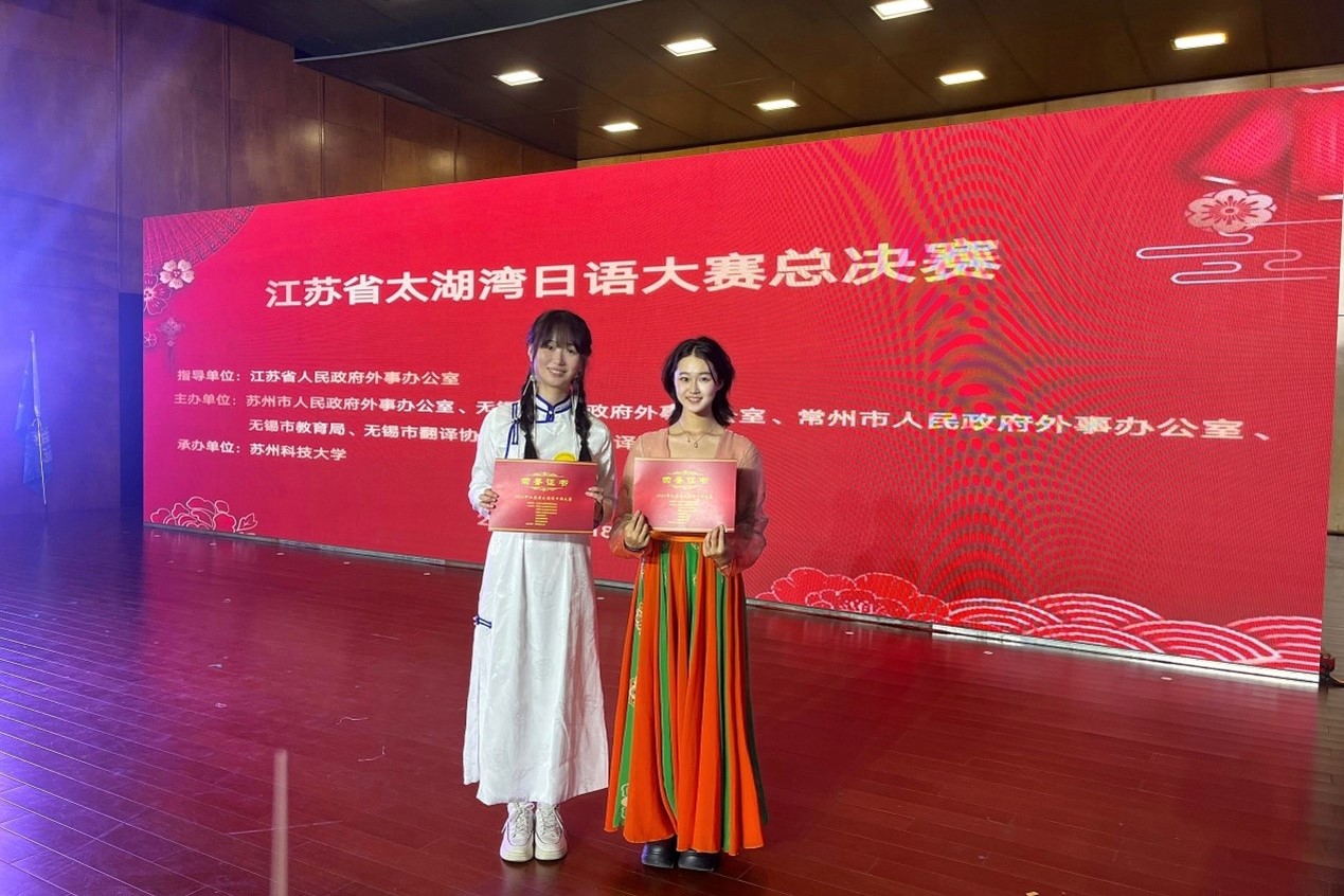 日语专业2021级陈芯蕊同学与2022级丛硕同学表现出色,凭借扎实的日语语言功底、过硬的心理素质、沉着冷静的赛风,同时荣获大赛特等奖;李智老师、中西由美子老师、管纪龙老师和田村恭平等四位老师荣获优秀指导教师奖;江南大学荣获优秀单位组织奖。