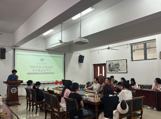 “研途奋进”第二十一期活动在外院楼A349成功举办,本次活动主题为“研职有你,追梦起航”研究生升学就业分享交流会。2022级、2023级全体硕士研究生参与了本次活动,五位2021级硕士研究生分享了自己的升学求职经历。