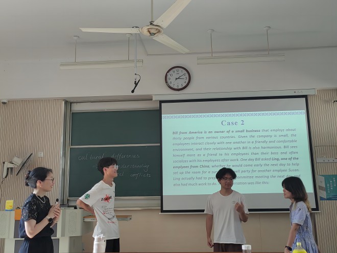 派出了以跨文化交际、口译和思辨表达见长的七位教师,精心设计了三个方向的课程,并从应用和学术两个角度,为所有参课学生布置了小组讨论作业。在5天的训练营期间,老师们通过深入浅出的知识讲解,丰富有趣的案例介绍,生动活泼的课堂活动,将语言学习和思辨力提升融入跨文化交流,并带领学生们进行初步的学术探索和研究。在结营评比中,共有16个学术组,28个应用组进行了交流,他们用全英文的案例表演和分析汇报等方式,全面展示了此次训练营的成果。