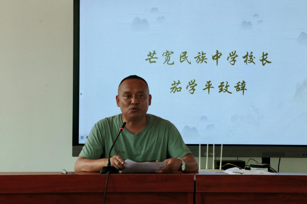 芒宽民族中学校长茄学平代表全体师生向天美娱乐官网