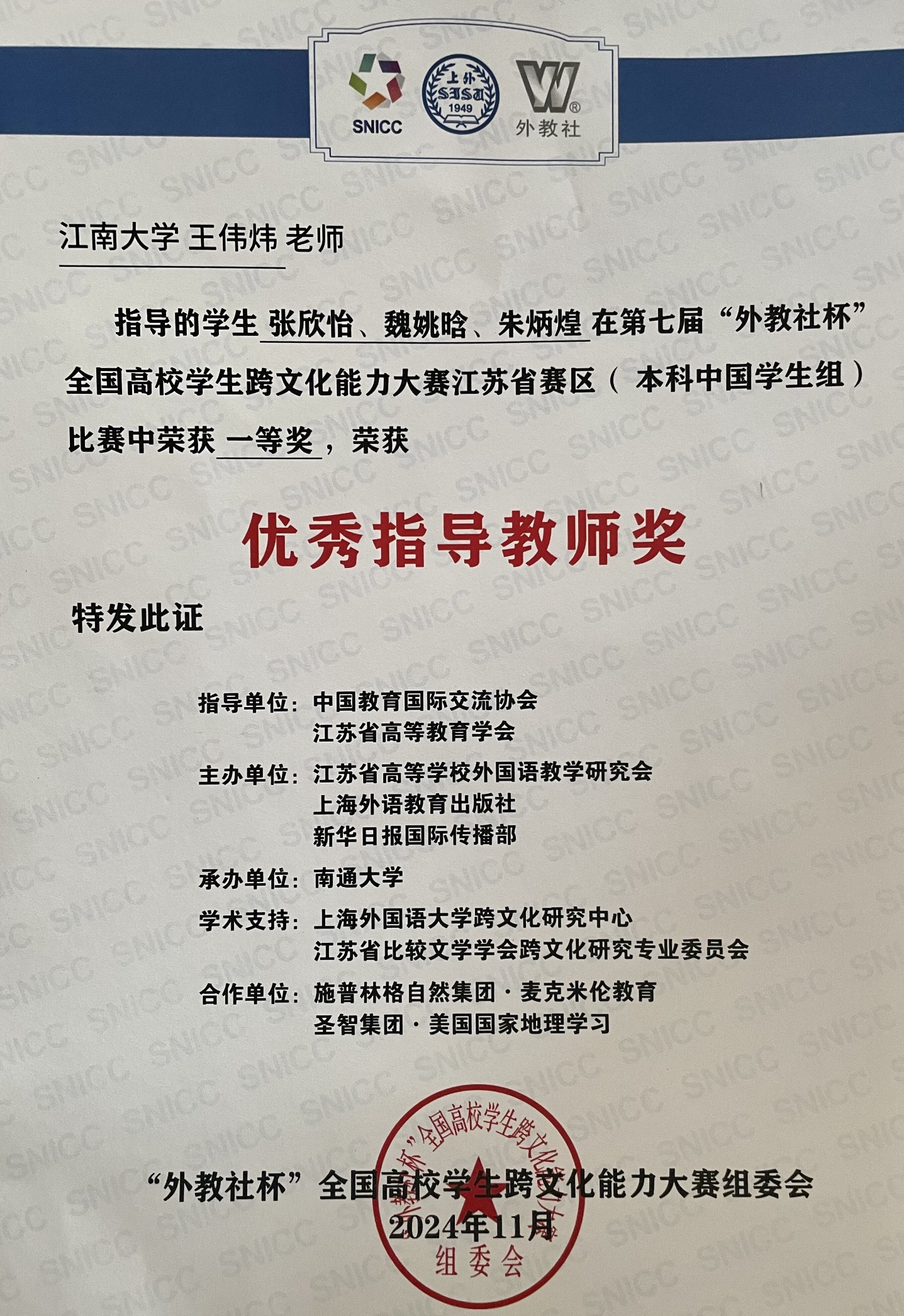 2024年11月1日至3日,第七届“外教社杯”全国高校学生跨文化能力大赛江苏省赛区比赛在南通大学成功举办。比赛分为本科中国学生组、高职中国学生组和国际学生组三个赛道,其中本科中国学生组共有包括来自南京大学、东南大学、南京理工大学、南京医科大学等43所高校的43个团队。经过激烈角逐,由我校天美娱乐官网
