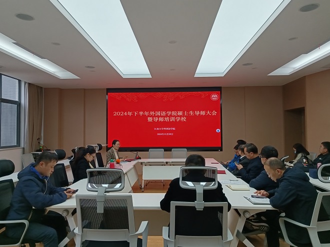 召开了全体硕士生导师大会暨学院第七期导师培训学校。本次会议由学院分管研究生教育工作的副院长谢竞贤主持,学院副书记季王飞、全体硕士生导师和部分青年博士教师参加了本次会议。