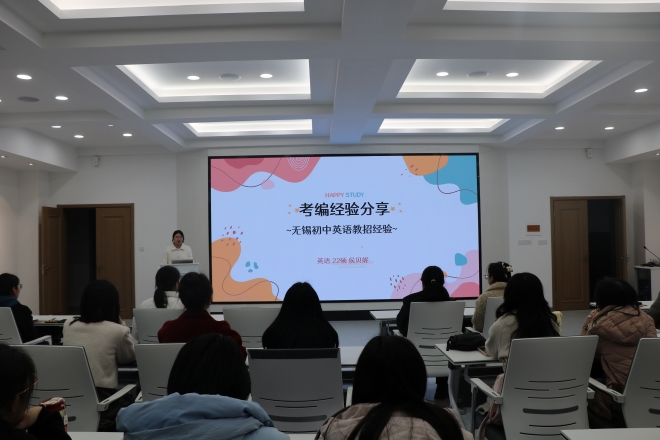 接着,成功考取无锡市新吴区教师编制的侯贝妮为在座的同学们详细介绍了备考教师的过程。她从今年的考编形势、面试技巧、面试真题及试讲练习四个方面展开分享,并强调练习试讲时要采用计时训练,通过录制视频的方式复盘,及时发现自己的问题并加以改进。同时,她还提醒大家:每一次考试机会都来之不易,切不可因为考试地点路途遥远就轻易放弃。