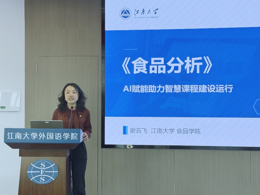 首先,我校食品学院副院长、博士生导师谢云飞教授在君金报告厅作了题为“《食品分析》AI赋能助力智慧课程建设运行”的讲座,她以深入浅出的语言娓娓道来,运用生动鲜活的案例,精彩呈现了我校品牌课程在数字化教育创新领域的开拓之路与丰硕成果,彰显了技术赋能教育的无限可能。