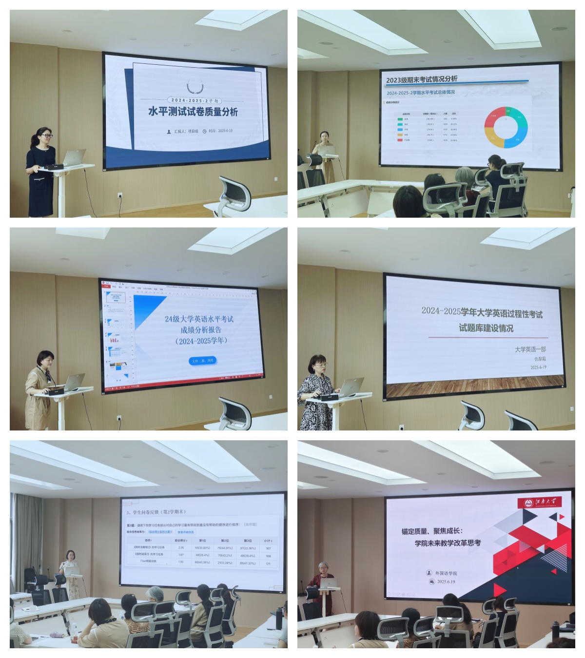 会议在热烈讨论的氛围中接近尾声。本次研讨会不仅是对本学期工作的全面总结与深刻反思,更明确了未来教学改革的方向与重点,为提升大学英语教学质量、助力学生成长和教师发展奠定了坚实基础。学院全体教师将凝心聚力,向培养具有国际竞争力的一流人才继续奋进。