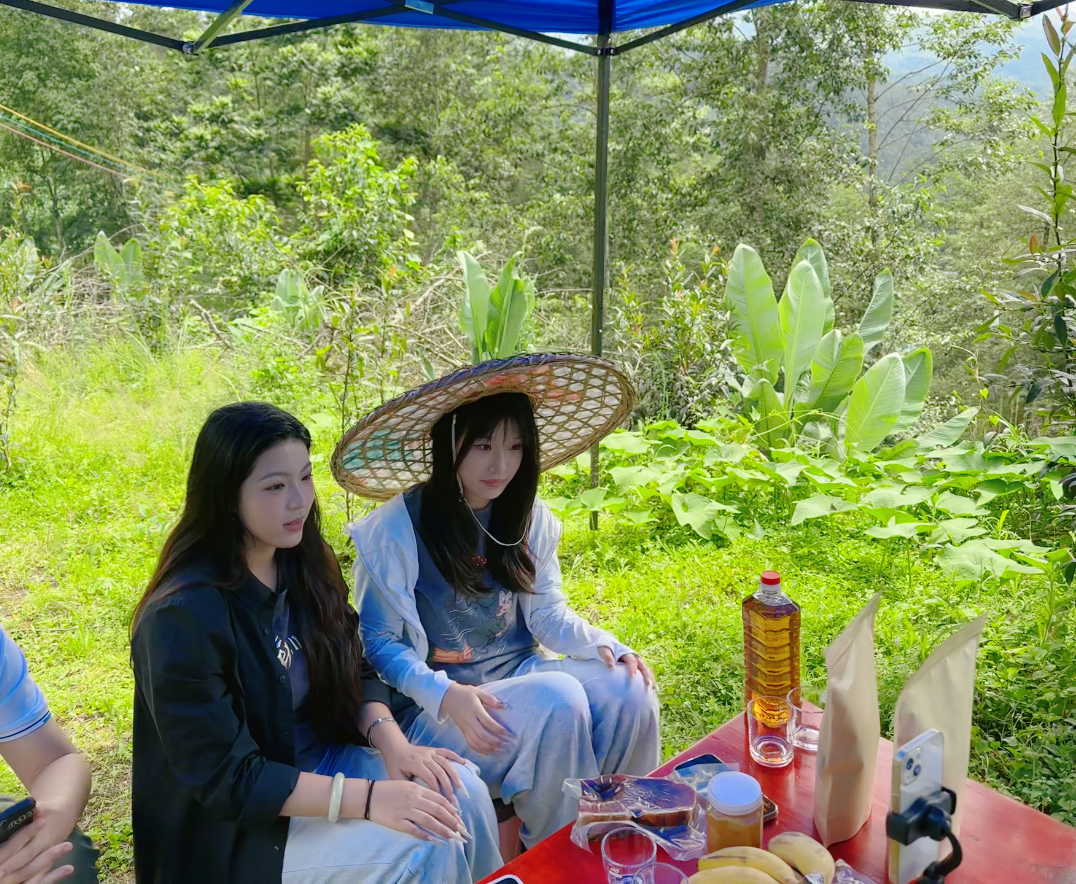 实践团在水源村开展了为期十日的调研,足迹遍布茶园、农田、加工坊等生产一线。在云雾缭绕的茶园,成员们记录下茶农“保山云雾养茶,叶片厚、滋味醇”的种植心得,倾听春茶采摘标准与冲泡特性;细红豆种植地中,村民“山泉水灌溉,沙土地扎根,煮出来沙糯不烂”的介绍,成为产品推介的鲜活素材;竹林里散养的土鸡、传统工艺压榨的铁核桃油、自然发酵的火腿……成员们用镜头捕捉每款农产的独特之处,将“原生态”“传统工艺”等核心卖点融入推介内容。