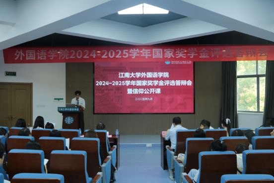2024-2025学年本科生国家奖学金评选答辩会在君金报告厅顺利举行。答辩小组成员学院党委副书记、副院长季王飞,英语系副主任钱薇薇,分团委书记顾海星,班主任代表白鸽,辅导员朱家烨、查博奕以及学生代表潘佳琪出席。经前期个人报名、资格审查,16名候选人参加答辩。全体2025级新生现场观摩学习优秀学长学姐的成长轨迹。
