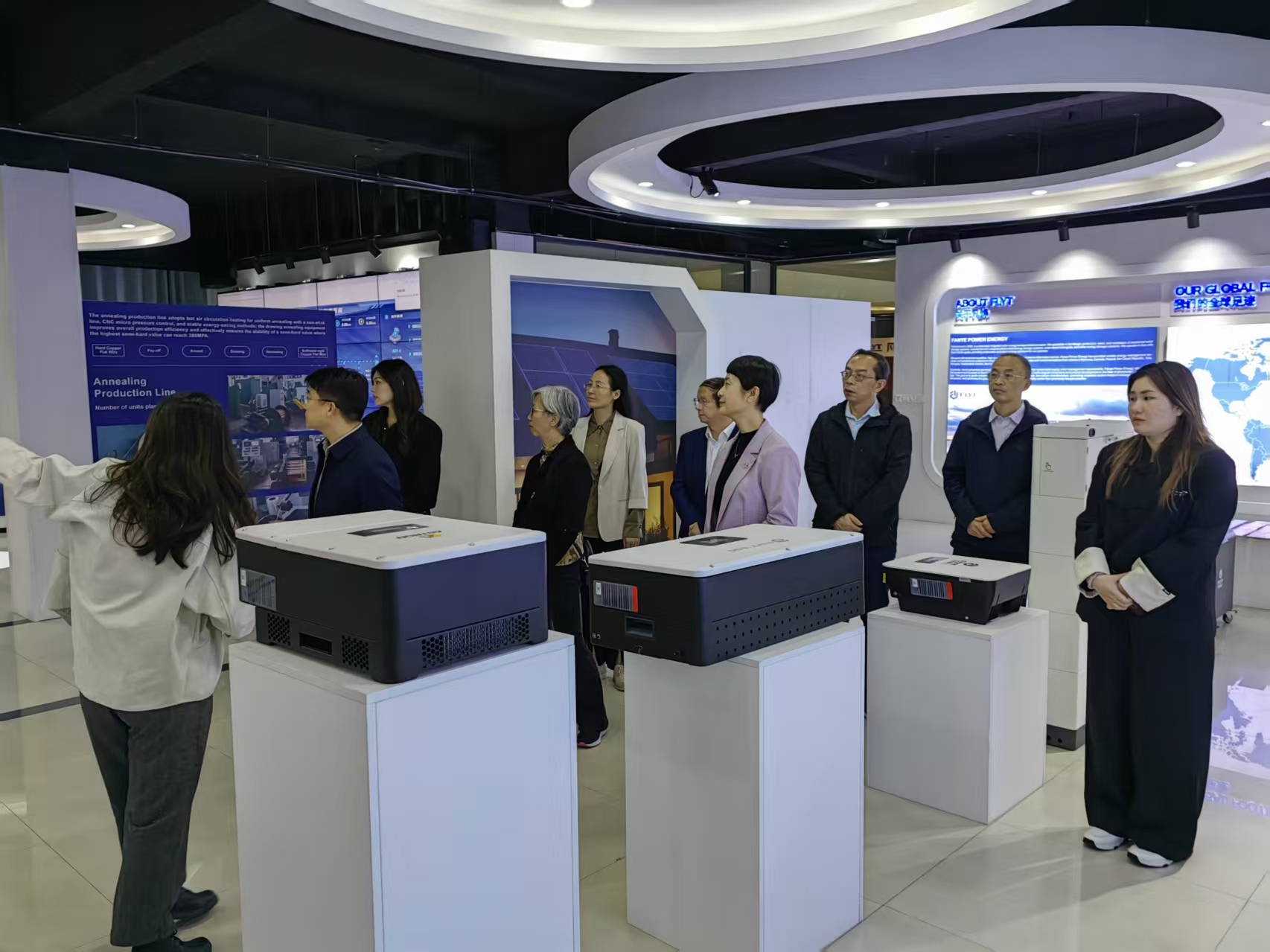第三站调研团队来到江苏凡烨电力能源设备有限公司。公司市场经理蒋瑜翎、产品经理魏梦蝶陪同参观。作为专业从事电力设备研发与制造的企业,凡烨电力在新能源领域拥有多项专利技术。在交流中,蒋瑜翎经理介绍了公司产品在海外市场的推广情况,指出专业翻译对技术文档、产品说明书的重要性。