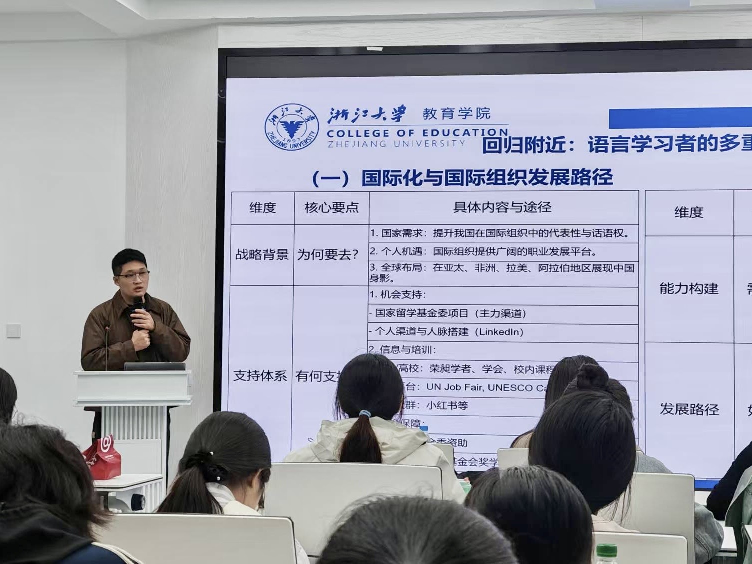 讲座中,宋宇博士将其十年的求学之路生动地划分为“实践蜜月期”、“研途适应期”、“观念转换期”与“行动下沉期”四个阶段。他结合自身经历,分享了从对“教育乌托邦”的美好向往,到批判性思考教育的社会功能,最终构建起坚实学术职业认同的完整过程,深刻阐释了一名青年学者如何从“被动适应”走向“主动主导”的蜕变。
