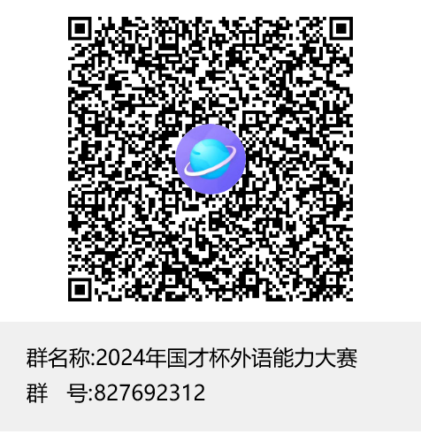 参赛注册:登录大赛官网(//ucc.fltrp.com/),参赛选手须在“选手报名/参赛”页面注册报名“综合能力赛项”,获取备赛资源。报名成功后请立即加入2024年国才杯外语能力大赛QQ群(群号827692312)。