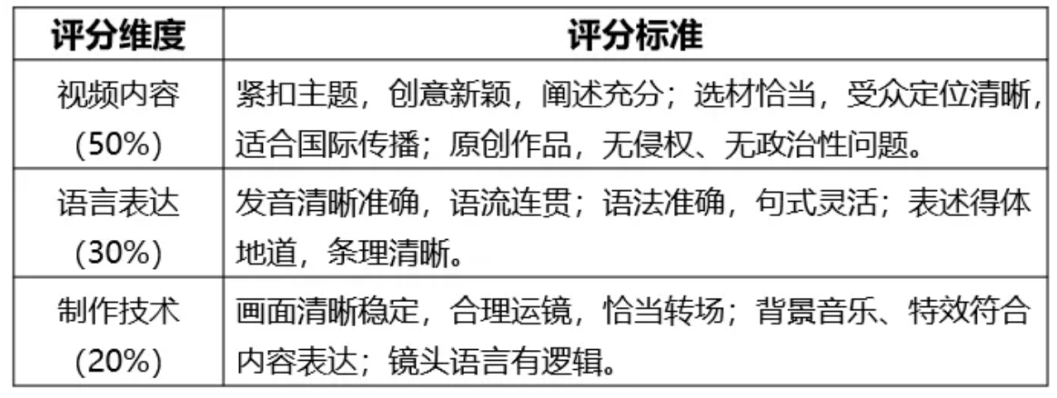 参赛方式:参赛选手围绕本年度比赛主题“美丽中国”制作原创短视频,视频时长3—5分钟,配中英双语字幕。