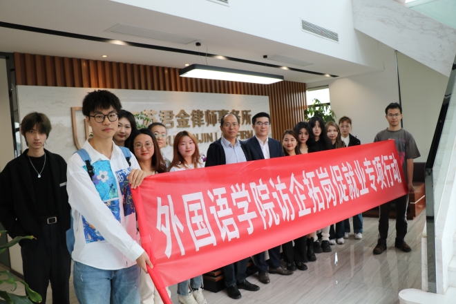 党委副书记刘伯贤、辅导员顾海星、辅导员苗文建以及大三、大四部分学生代表前往无锡君金律师事务所开展访企拓岗促就业交流会。